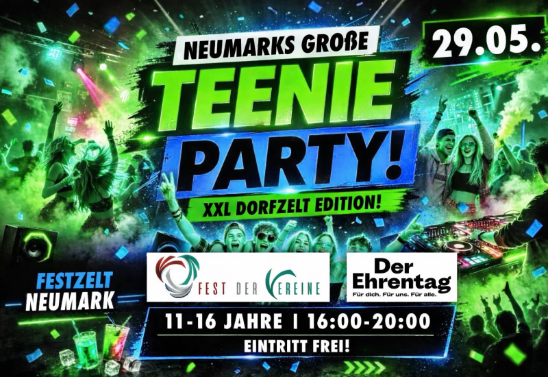 Am 29. und 30. Mai 2026 erwartet die Gäste im und um das große Festzelt am Badsteig sowie im Freibad Neumark ein buntes Programm für die ganze Familie. Zahlreiche Vereine der Ortsteile gestalten das Fest mit Mitmachangeboten, einem spannenden Volleyballturnier, Programmen der Kindertageseinrichtungen, einer XXL Teenie-Party sowie Musik und Tanz mit der Band „Spur 13“. Auch ein großes Hüpfburgenland und vielfältige Vereinsstände sorgen für Unterhaltung.