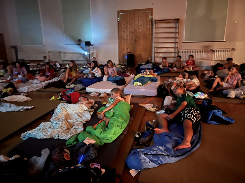 Zum Abschluss des Abends gab es ein gemütliches Kino in der Turnhalle.